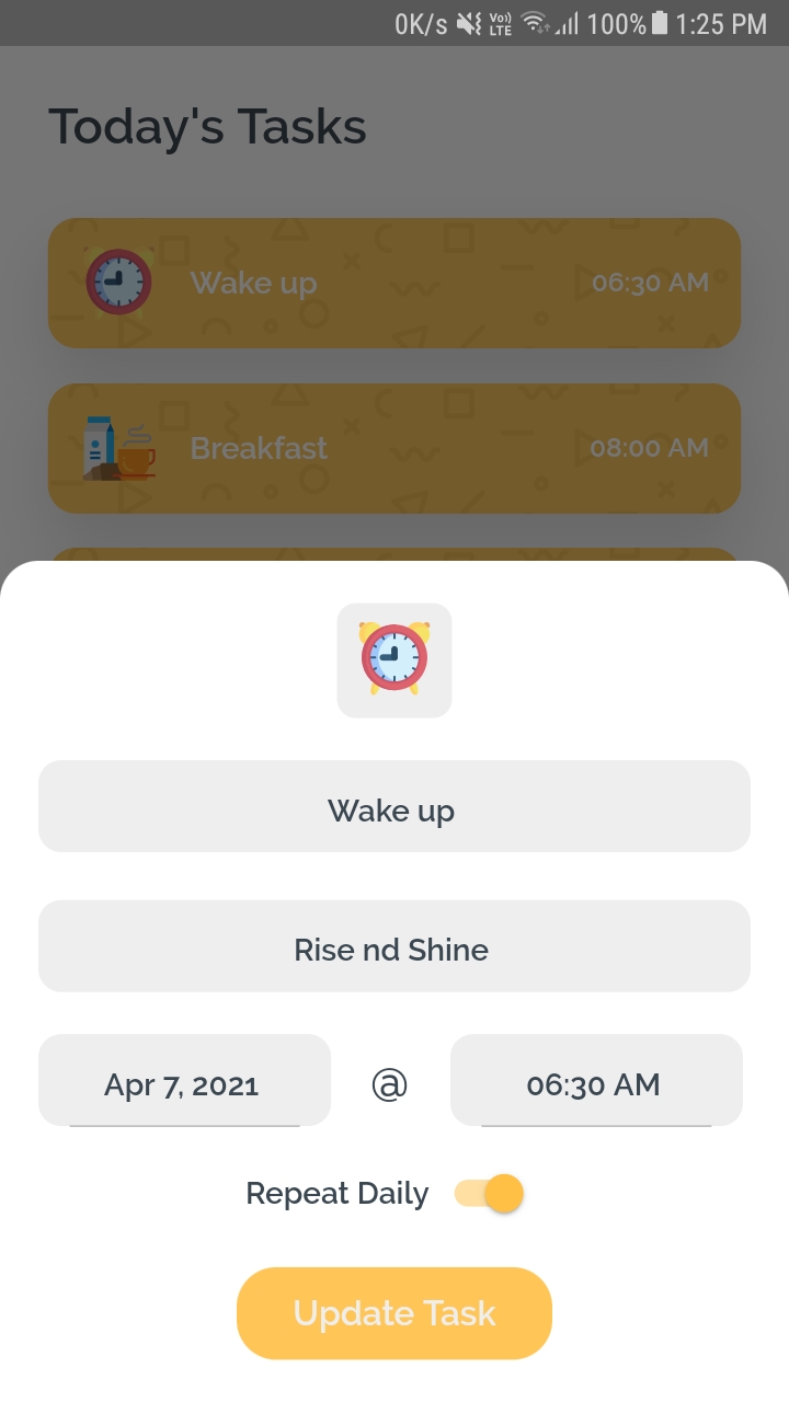 - Daily tasks are sorted & shown seperately.
